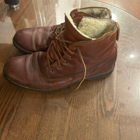 Face The Winter vintersko i størrelse 38. Skoene er laget i brunt skinn med kraftig gummisåle med snøkrystall-mønster under. Modellen har snøring foran og mykt, pelslignende fór innvendig for ekstra isolasjon. Egnet som varme vintersko til dame i hverdagsbruk og utendørsaktiviteter i kaldt vær.