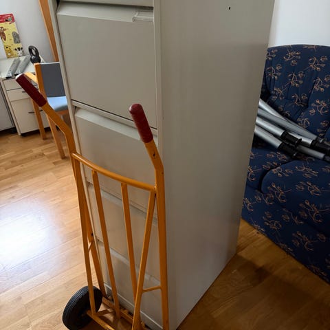Arkivskap i god stand gis bort. Det er tungt . Du kan ta bort skuffer. 10 trappetrinn til fortau. Vi har sekketralle. Det skal være greit.