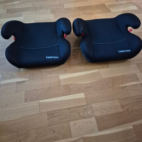 Beemoo sittepute bilstol med isofix 22-36 kg i svart farge. Sitteputen er beregnet for bruk i bil og brukes sammen med bilens trepunkts sikkerhetsbelte. Modellen har armlener som gir støtte til barnets hoftebelteføring. Undersiden har tydelig merking med godkjenningsetikett (ECE R44/04, gruppe III 22–36 kg). Egnet for større barn innenfor angitt vektgruppe som trenger belteforhøyer i bilsete.