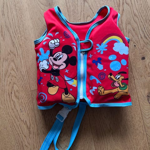 Fisher-Price redningsvest for barn i gul og flerfarget design med dyremotiver. Vesten har glidelåslukking i front og justerbar stropp med spenne over brystet for bedre passform. Den er laget i et lett materiale med oppdriftsmiddel integrert i vesten. Baksiden har trykt sikkerhets- og vedlikeholdsinformasjon. Egnet som flytehjelp til barn ved lek og opphold i vann under tilsyn av voksen.