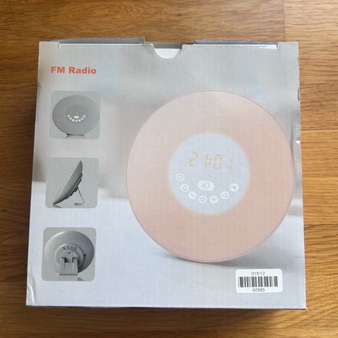 Sony klokkeradio med DAB/DAB+ og FM. Modellen har digitalt display med blå bakgrunnsbelysning, alarmfunksjon med to separate alarmer (A og B), snooze-knapp og sleep-timer. Tidsvisning i front og betjeningsknapper på toppen. Strømkabel tilkobles på baksiden. En kompakt, kubisk klokkeradio egnet for nattbord eller skrivebord.