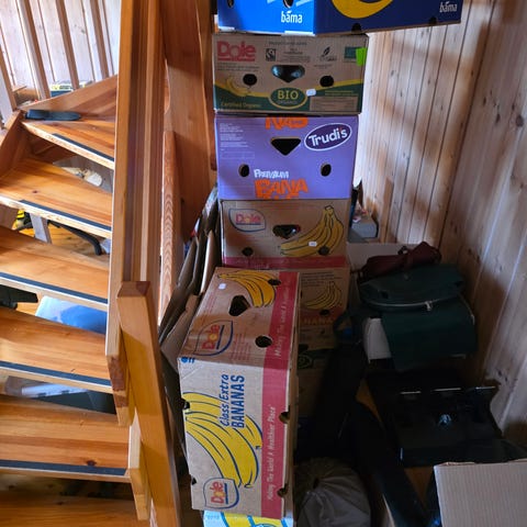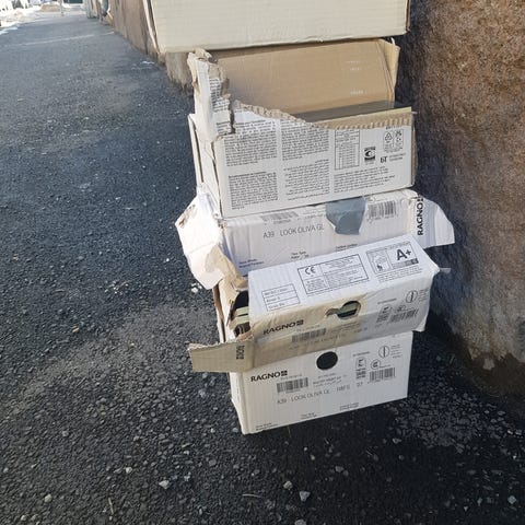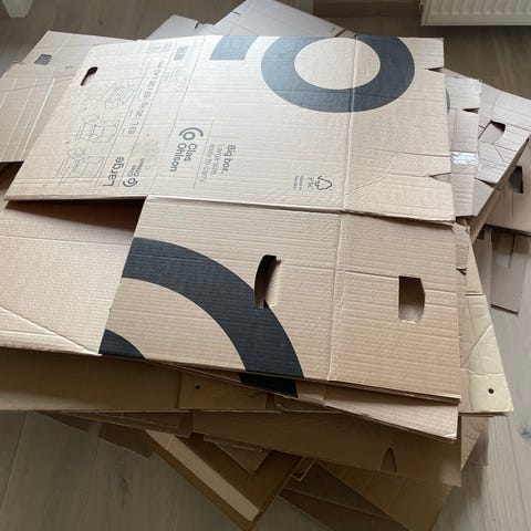Brune pappesker i bølgepapp. Egner seg til oppbevaring eller flytting av ulike gjenstander. Flere esker i ulik størrelse kan være inkludert, basert på bildet. Passer til generell bruk i hjem, bod eller lager.
