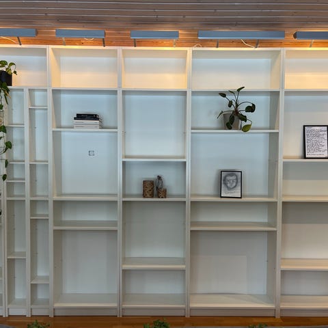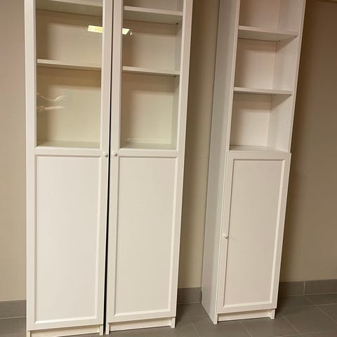 Pent brukte bokhyller selges.