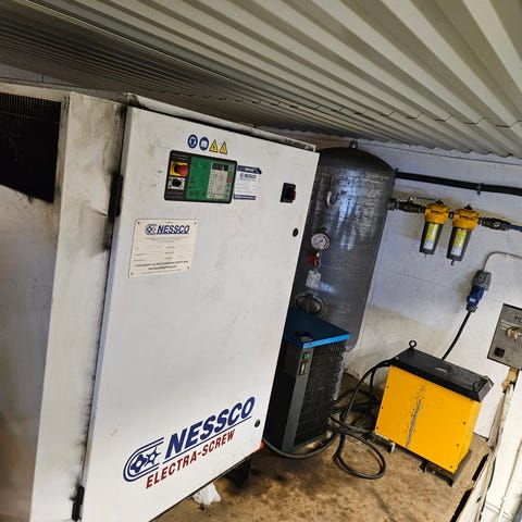 Komplett lakkeringsboks, med oljefyr, styreskap, alt av kanaler, viftemotor,blandeverk lakk, lakksprøyte vasker,