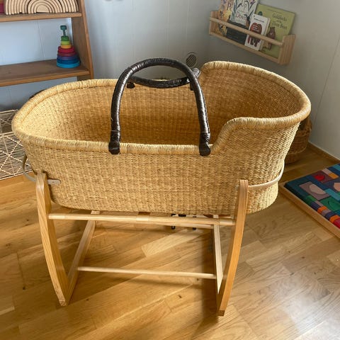 Noe bruksslitasje på et håndtak, bør ikke brukes til å bære baby. Ellers sparsomt brukt, mulig jeg kan finne tilhørende madrass og laken som kan inngå i kjøpet.