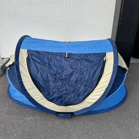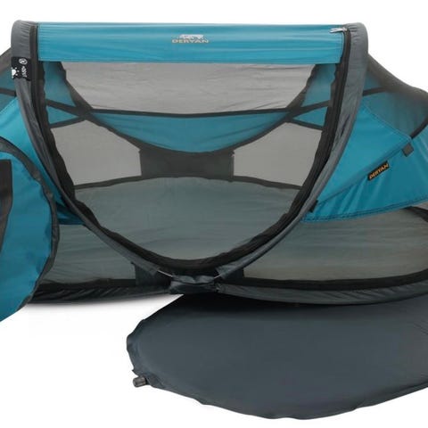 Deryan Baby Luxe pop-up reiseseng/leketelt for barn opptil 2,5 år. Inkl. oppblåsbart liggeunderlag/madrass som plasseres i en egen lomme under teltet og «overmadrass» / tynn matte / laken som festes med borrelås inne i teltet.
