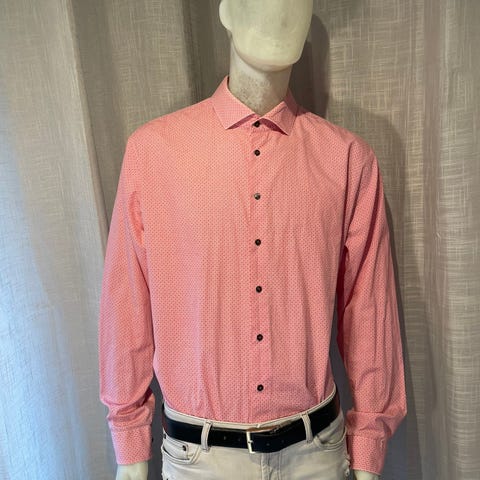Selger en klassisk og frisk herreskjorte fra Oscar i hvit og lyserød stripete utførelse. Dette er en skjorte av høy kvalitet i 100% strykefri bomull, perfekt for deg som vil se nystrøken ut gjennom hele dagen uten innsats.