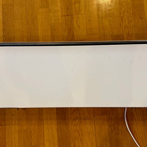 Frittstående panelovn i hvit utførelse. Ovnen har integrerte føtter for plassering på gulv og strømledning med støpsel for tilkobling til vanlig stikkontakt. På siden finnes betjeningspanel for innstillinger. Egnet som ekstra oppvarmingskilde i rom som stue, soverom eller kontor.