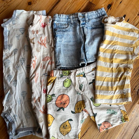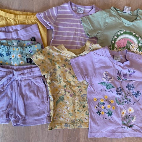 Diverse sommertøy: t-skjorter, bodyer, shortser, leggings, pysj m.m. Totalt 24 plagg. Merker: Lindex, Kappahl, HM, Polarn O. Pyret, Reflex, Zara m.m.