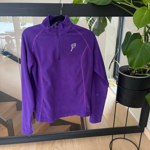 Lowe Alpine turgenser i fleece for dame i størrelse S. Genseren har halv glidelås i front og høy krage. Den er laget i myk fleece som egner seg som mellomlag på fotturer og annen friluftsaktivitet. Fargen er lys lilla med ton-i-ton paneler i sidene. Genseren har brodert Lowe Alpine-logo på brystet og flatlocksømmer for økt komfort under bruk med sekk eller ytterjakke.