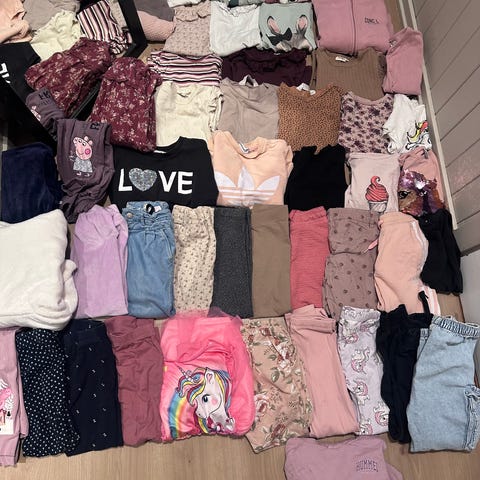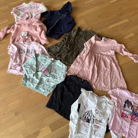 Pakke med i hovedsak overdeler. Gensere men det er også 2 pysjer med shorts og T-skjorter og en ubrukt joggedrakt fra lil atelier. Cardiganene i beige og blå er ubrukt og kun vasket.