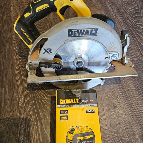 Sirkelsag fra Dewalt selges, følger med sagblad med 24 tenner. Modell: DCS570N-XJ
