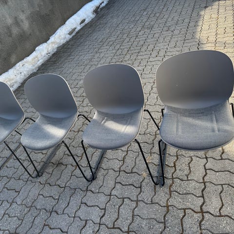 7 stoler RBM Noor 4-leg PP shell i blå og gul