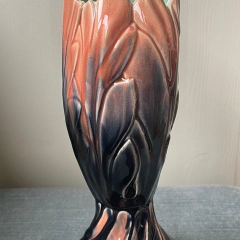 En liten vase dekorert med et geometrisk Piet Mondrian-inspirert mønster. Dansk design . Høyde 11cm.