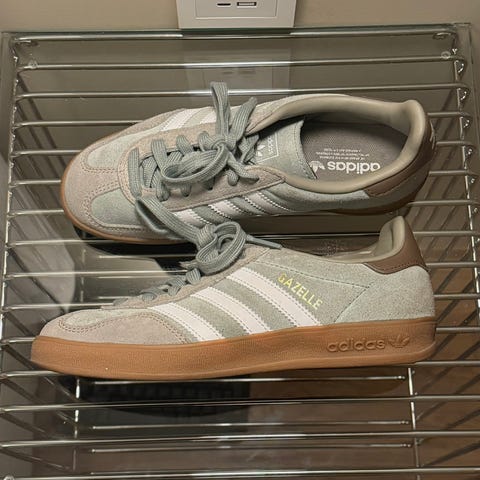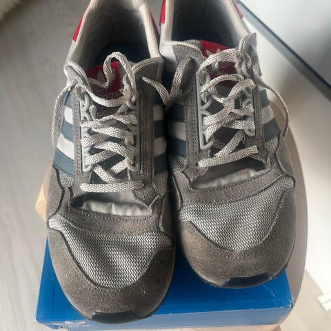 Adidas sneakers joggesko i størrelse 42. Modellen har overdel i beige materiale med de karakteristiske tre stripene på sidene og mørk hælkappe. Yttersåle i gummi. Leveres med lisser som vist på bildene. Egner seg som fritidssko og hverdagsbruk.