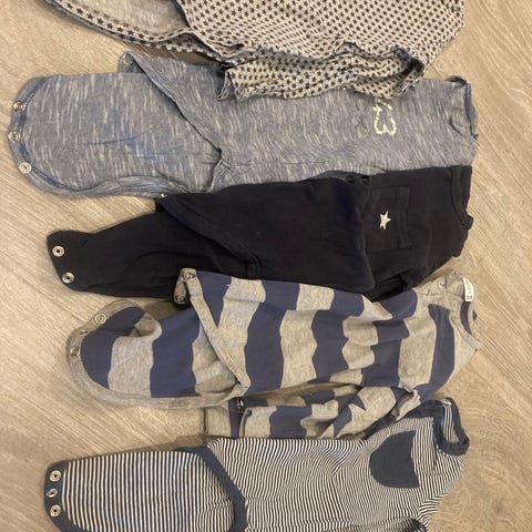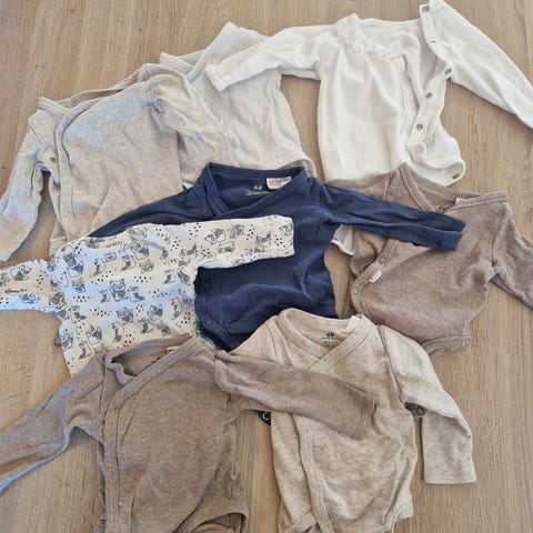 6 bodyer fra Hust & Claire, 1 fra Name it, 1 fra Polarn O. Pyret. Alltid vasket med parfymefritt vaskemiddel.