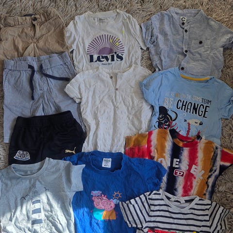 Sommerpakke med klær str. 98/104. T-skjorter og UV-drakt.