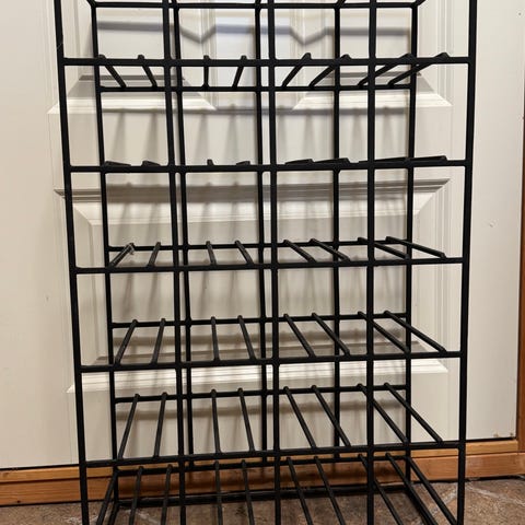 Selges brukt, men så godt som nytt. Skikkelig solid vinstativ med plass til 24 flasker.