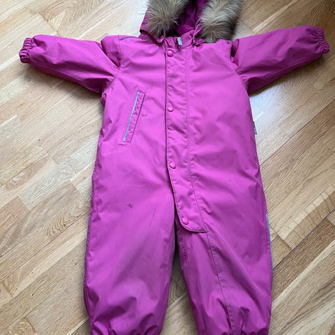 Reflex vinterdress for barn i størrelse 98. Dressen er rød. Modellen er unisex og har hette med avtagbar fuskepels. Vinterdressen har glidelås foran, høy krage og polstret fôr som gir god isolasjon. Egner seg til bruk i kaldt vær.