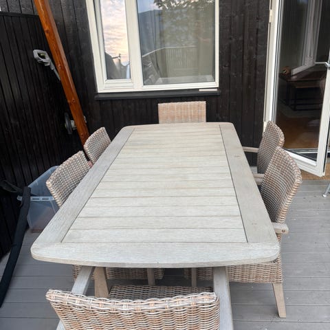 Selger fint og lite brukt teak møbler ifra plantasjen . Er 4 år og pusset og oljet i fjor . 4 sammenleggbare stoler.