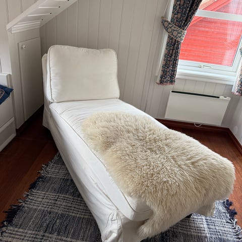 Godt brukt men funker som en daybed hvis man legger et teppe over. Eller for å bygge på en Vimle- sofa.