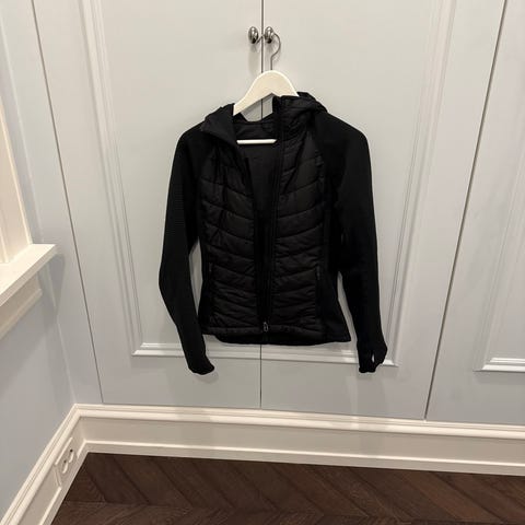 Femme jakke for dame i størrelse M. Jakken er svart og har hette. Den har glidelås i front og sidelommer med glidelås. Passer som lett ytterjakke eller mellomlag i hverdagen eller til enkel turbruk.