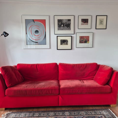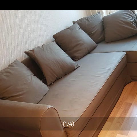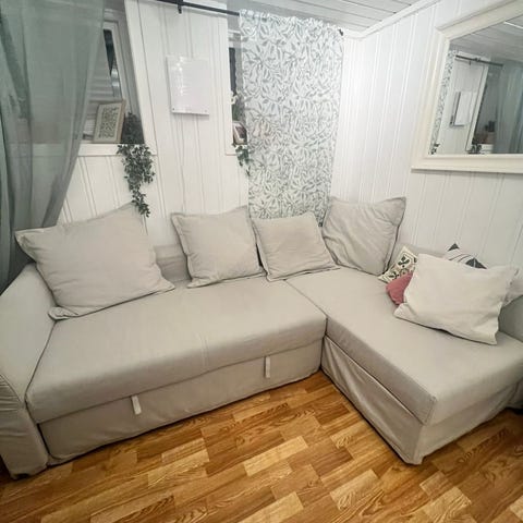 Sovesofa fra IKEA gis bort mot henting. Avtagbare trekk som trenger en vask. Det har vœrt hund i leiligheten.