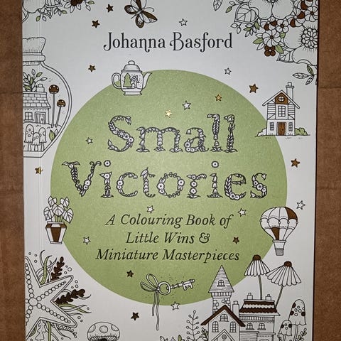 Nydelig fargeleggingsbok med 100 tegninger. Jeg har begynt på 11 av de (avbildet)