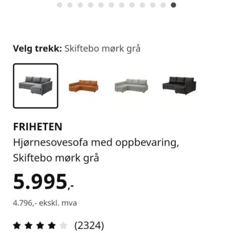 Sovesofa. Har vært brukt veldig lite, både som sofa og sovesofa. Stort sett aldri som sofa, og som seng kanskje bare noen få titalls ganger. Står som ny.