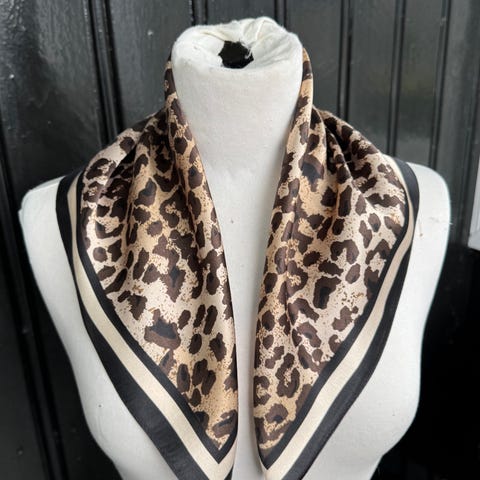 Nydelig svart silkeskjerf med blomster. Mykt og behagelig. 100%silke. Skjerfet forandrer litt utseende etter hvilken kant man viser frem, så passer til mye. Enkelt å dandere på ulike måter da silken er så fin. Helt som nytt. Størrelse 68x68cm . Kan gjerne sende med posten til 46.-