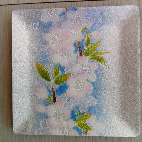 Selger en nydelig emaljert skål av mt. Fuji med kirsebærblomster.