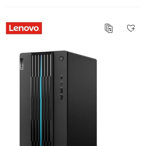 Lenovo Legion stasjonær PC med gjennomsiktig sidepanel og frontpanel med RGB-belysning. Kabinettet har flere RGB-vifter i front og bak, samt sidepanel i glass som gir innsyn til komponentene. På baksiden finnes standard tilkoblinger for skjerm, lyd og USB, samt utvidelsesspor for skjermkort og andre kort. Egner seg for bruk som gaming-PC eller kraftig arbeidsstasjon, avhengig av installert maskinvarekonfigurasjon.