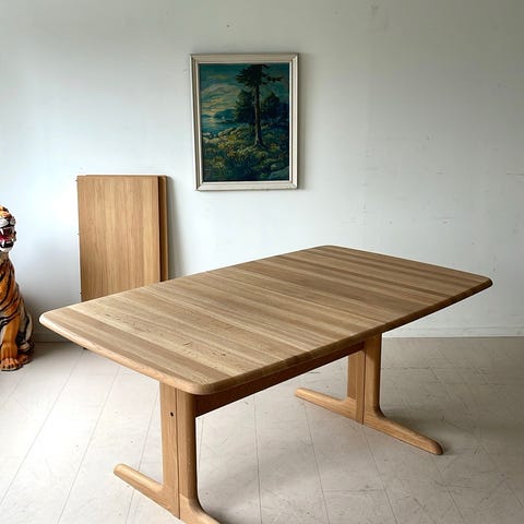 Bord: Klassisk design fra danske Skovby Møbler. Bordet er i lys naturoljet eik og er renovert med full puss. Plassvennlig bord. Platene kan lagres under bordplaten.