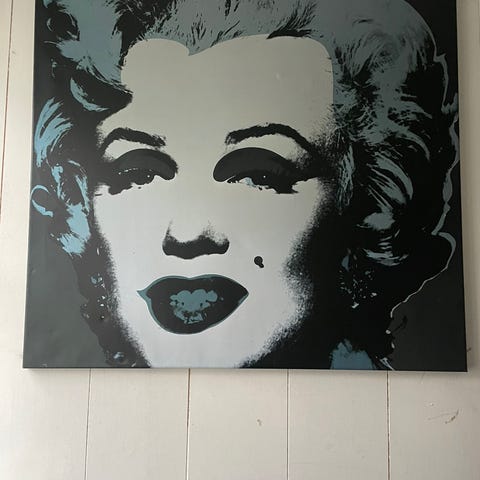 Ukjent kunstner portrettmaleri lerret svart‑hvitt med røde lepper