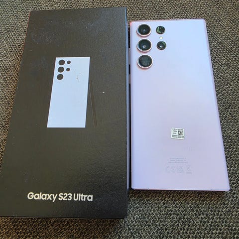 Samsung S23 Ultra (Lilla farge) og Galaxy Watch 4 Classic selges samlet. 256GB lagring på mobilen. 8GB minne.