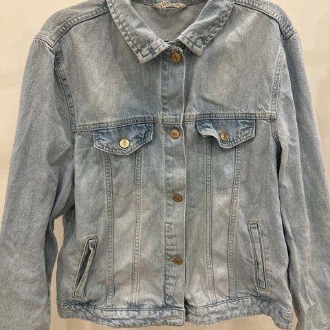 LCW Jeans denimjakke for dame i størrelse S. Jakken er i blå denim med rund hals og knappelukking foran. Den har to brystlommer med klaff og knapp, samt markerte sømmer som gir struktur. Nederkant har en lett frynset finish. Egnet som lett jakke til hverdagsbruk.