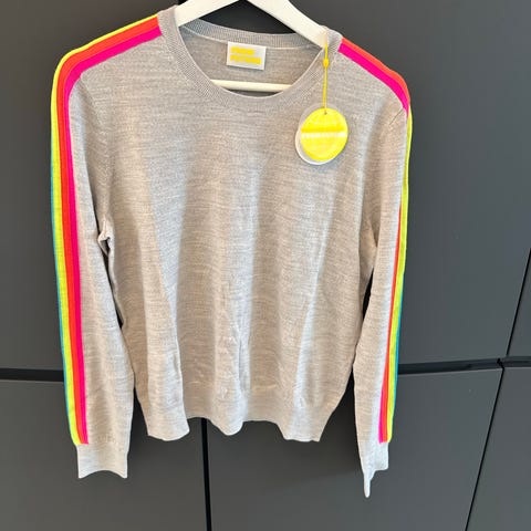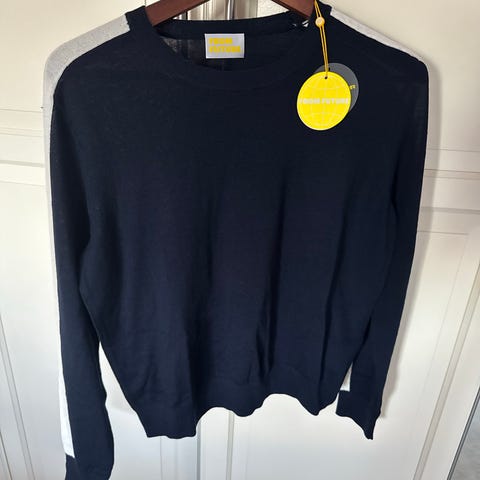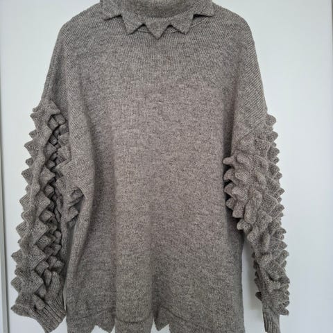 Genseren har en løstsittende passform. Det mest karakteristiske trekket er den asymmetriske falden og de lange, hengende panelene foran som skaper en drapert effekt. Den har en løstsittende passform, og er normal i str.