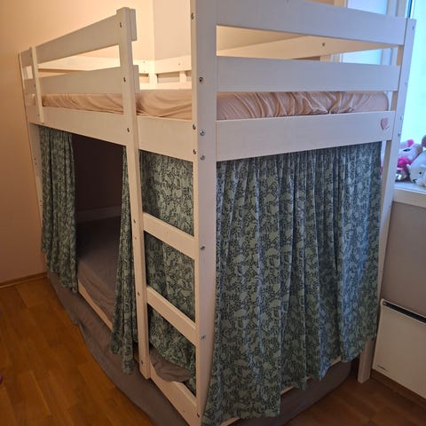 Pent brukt køyeseng med madrasser selges. 90 cm bredde, lengde 200 cm.