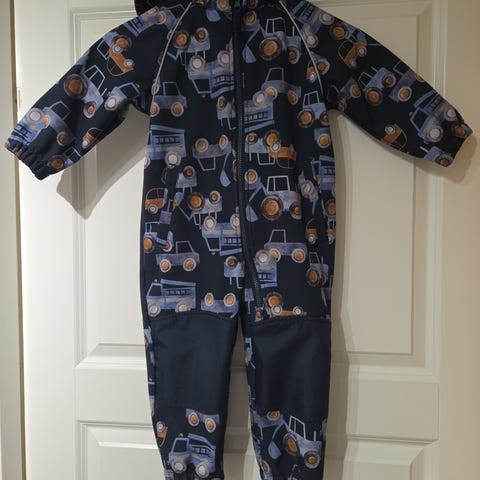 Fleeceforet dress og hette (avtagbar), refleksdetaljer, avtagbare gummistrikk til sko.