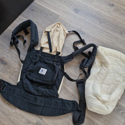 Bæresele i svart farge. Justerbare skulderstropper og midjebelte med spenner for tilpasning. Fungerer som den skal.