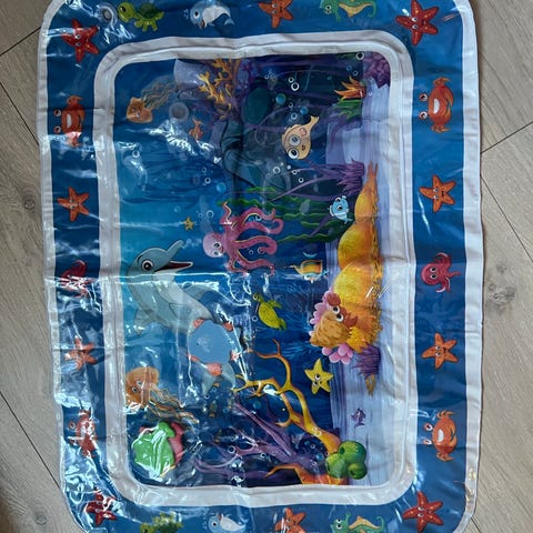 Lekegulv i skum. Demper lyd og isolerer mot kalde gulv. Hver bit er 30x30, 9 biter som totalt blir 90x90. Glidelåsen til selve posen rundt er knekt av.