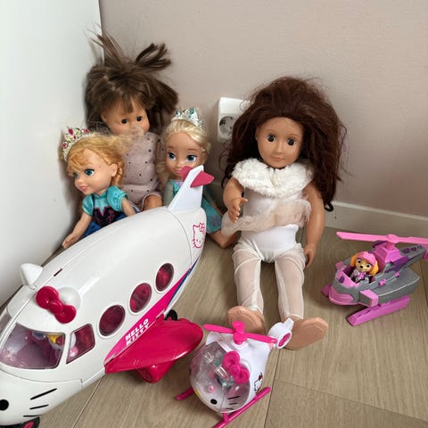 Pakke hente med diverse. Perlesett, hello kitty veske, sminke, tegneblyanter og viskelær, barnesaks..