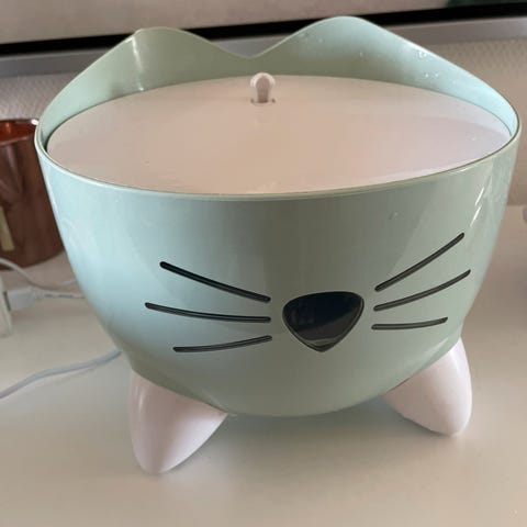 PetSafe Drinkwell drikkefontene med kapasitet på 1,5 liter for katt og små hunder. Fontenen har en rund skål med forhøyet midtparti og vannstrøm fra toppen som oppmuntrer til jevn drikking. Fargekombinasjon i blått og grått. Drives med strøm via medfølgende pumpe og ledning. Egnet for innendørs bruk og kan plasseres på gulv i nærheten av stikkontakt. Enkel å ta fra hverandre for rengjøring og påfylling av vann.