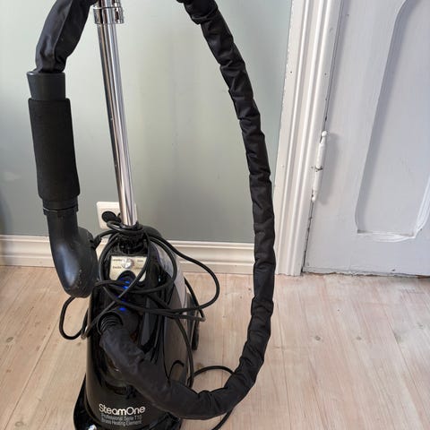 Vitesse klessteamer i grå farge. Enheten leveres med dampdyse og slange, samt strømledning. Klessteameren er egnet for oppfriskning og utjevning av krøller på klær og tekstiler som kan dampes. Apparatet har vannbeholder på toppen og hjul under for enkel flytting. Passer til profesjonelt bruk eller til bruk hjemme til daglig damping av plagg som skjorter, kjoler, bukser og jakker, forutsatt at tekstilene tåler dampbehandling.