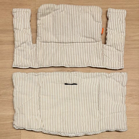 Har 2 stk. Stokke puter til tripp trapp stol. Vaskes i vaskemaskinen. Selges gjerne samlet.