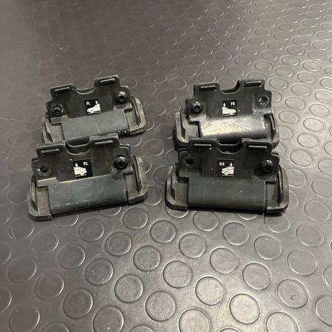 Thule takstativ monteringssett Kit med fotsett. Passer til alle thule sitt stanger. Monteringssett passer til bil med flushrails med jeg vet ikke hvilken modell. Derfor selger rimelig. Mangler deksel, uansett fungerer som det skal.