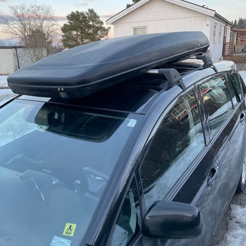 Komplett Model 3-takstativ inklusive Thule SnowPack Extender Sort 7325B plass til 5 par ski ferdig montert på takstativet. Har hatt 4 par brede planker på den uten problem, slik at 6 vanlige alpinski også burde gå.