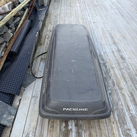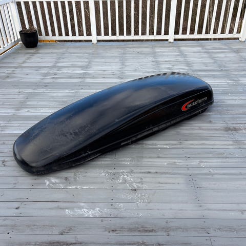 Biltema takboks i svart plast. Boksen har riflet overflate på lokket og innvendig bunn for økt stivhet. Den åpnes ved hjelp av gassdemper/støttestag på innsiden. Egnet for montering på takstativ på personbil for ekstra lasteplass til bagasje og utstyr. Nøyaktig modellbetegnelse og volum er ikke oppgitt.