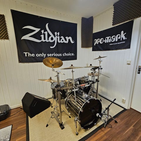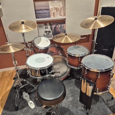 Veldig kult og fint trommesett håndlaga i USA. Låter kuler og krutt!