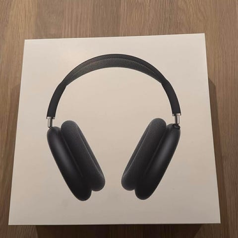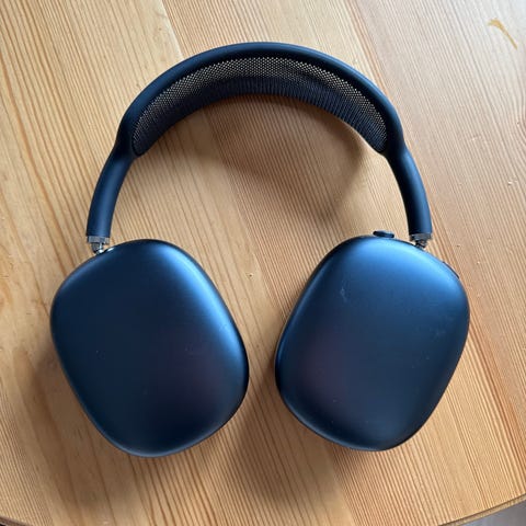 Apple AirPods Max hodetelefoner. Over-ear hodetelefoner med trådløs tilkobling via Bluetooth. Leveres med Smart Case ifølge emballasjen. Egnet for bruk med kompatible Apple-enheter og andre enheter som støtter Bluetooth-lyd.